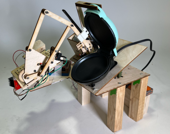 Built and wrote code for a linkage mechanism to use a fork to remove the pancake from the griddle.